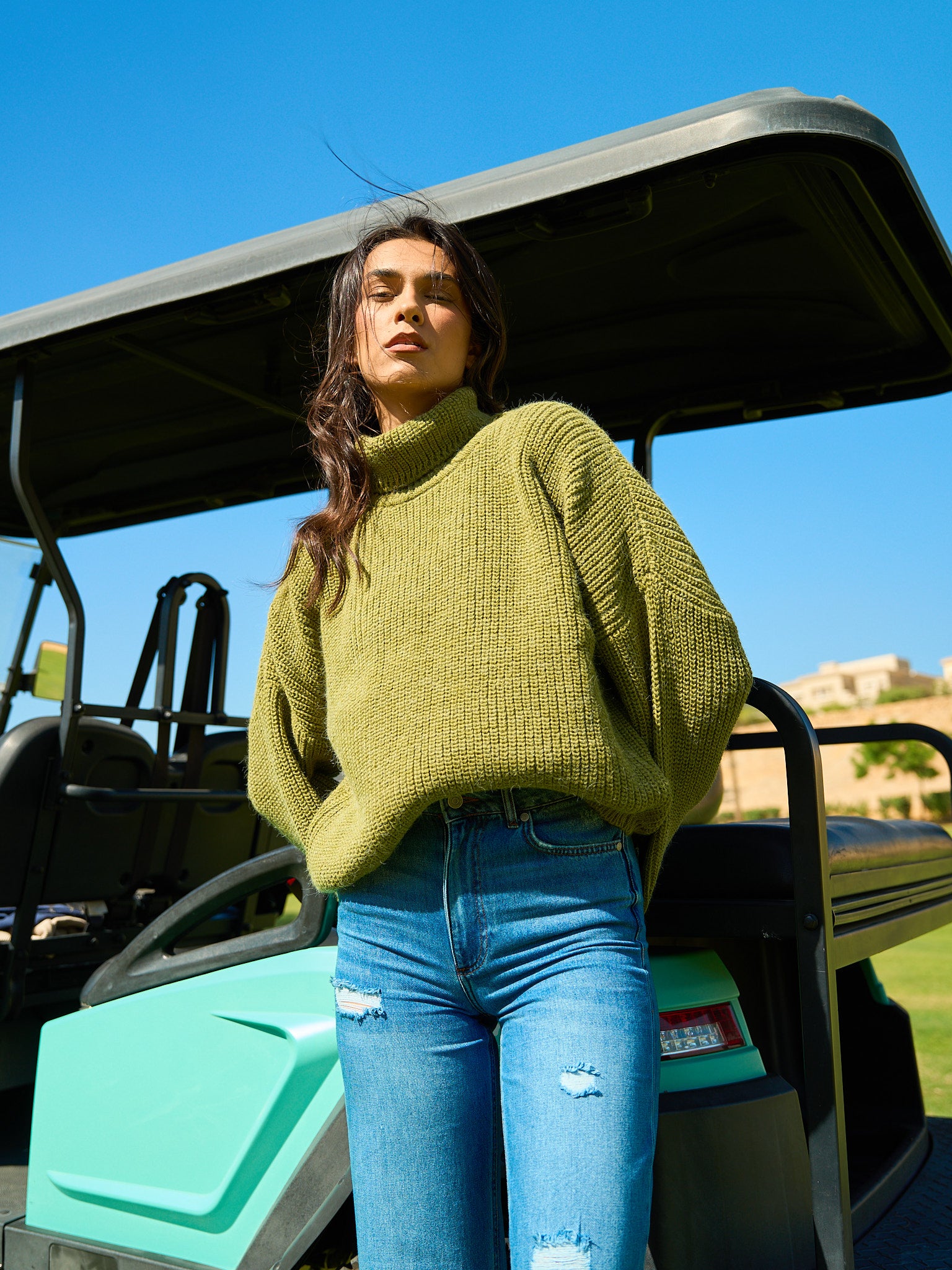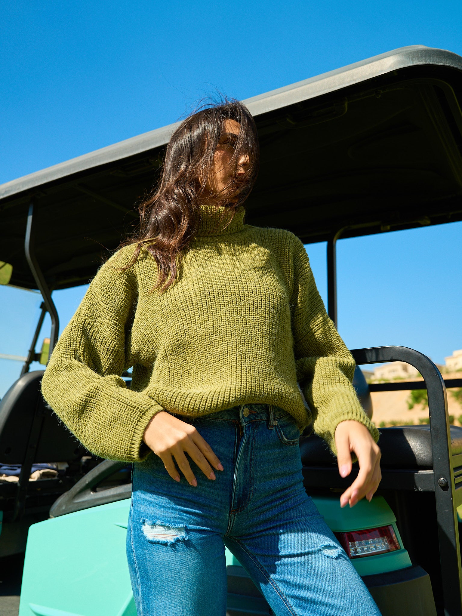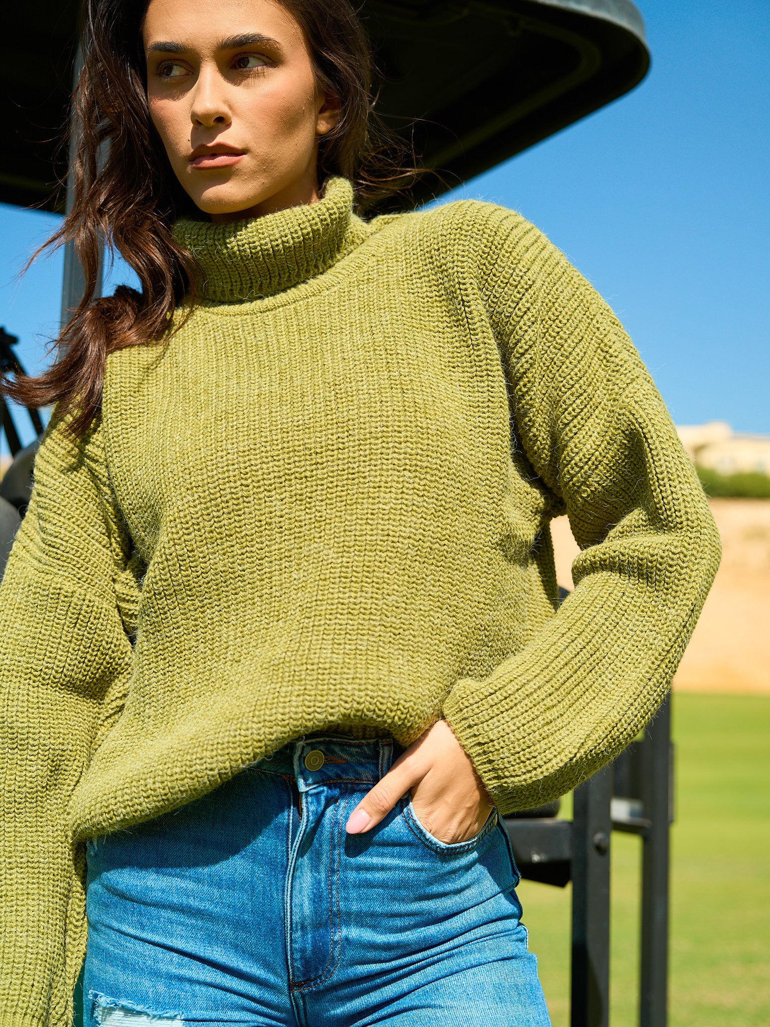 Essential is the perfect word to describe this soft knit wool jumper — it's a must-have for your winter wardrobe. It features a turtleneck with a rolled edge and long raglan sleeves.
