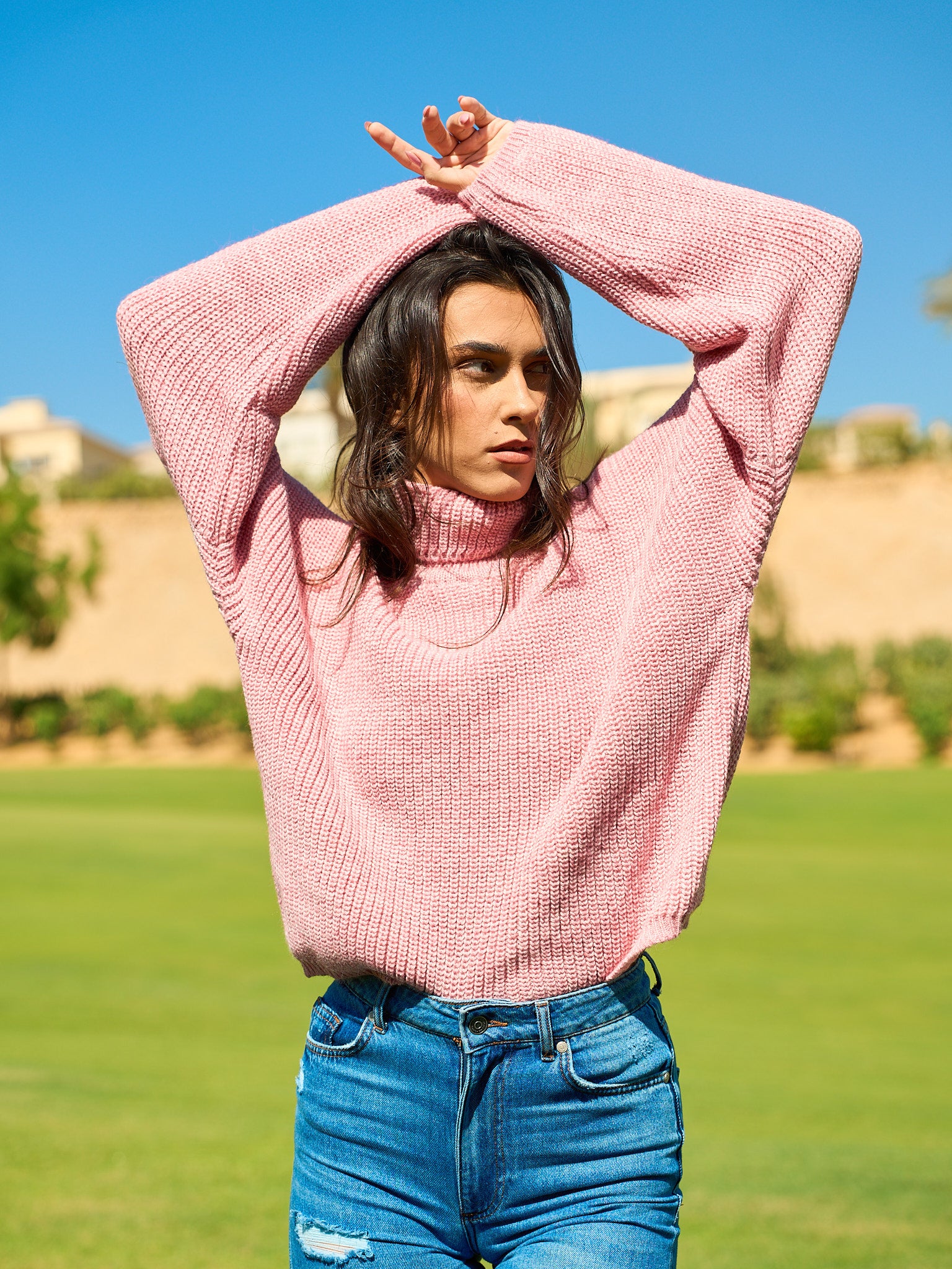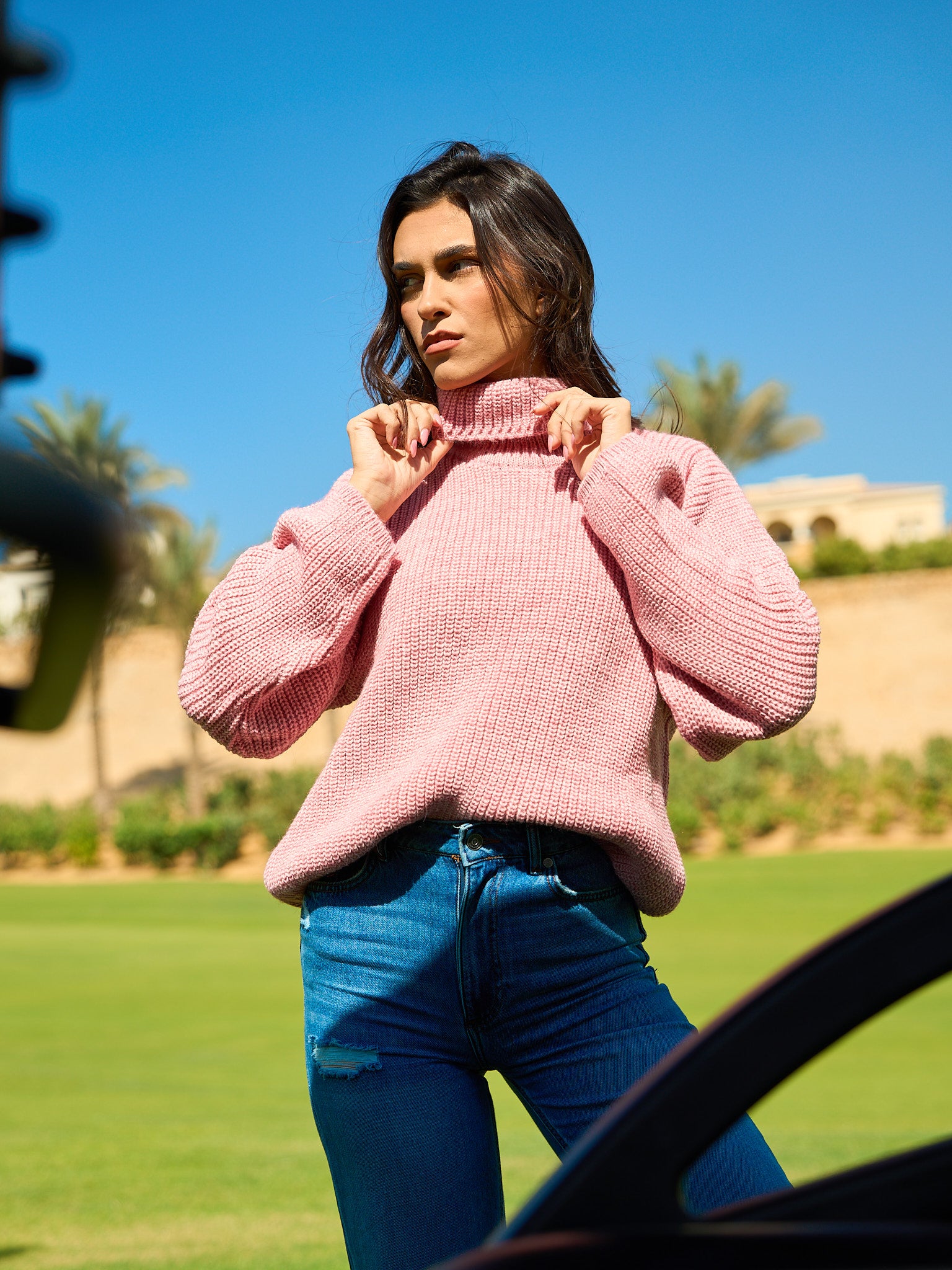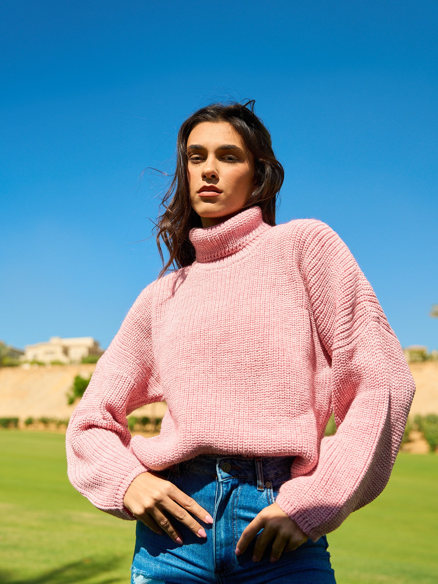 Essential is the perfect word to describe this soft knit wool jumper, it's a must-have for your winter wardrobe. It features a turtleneck with a rolled edge and long raglan sleeves.