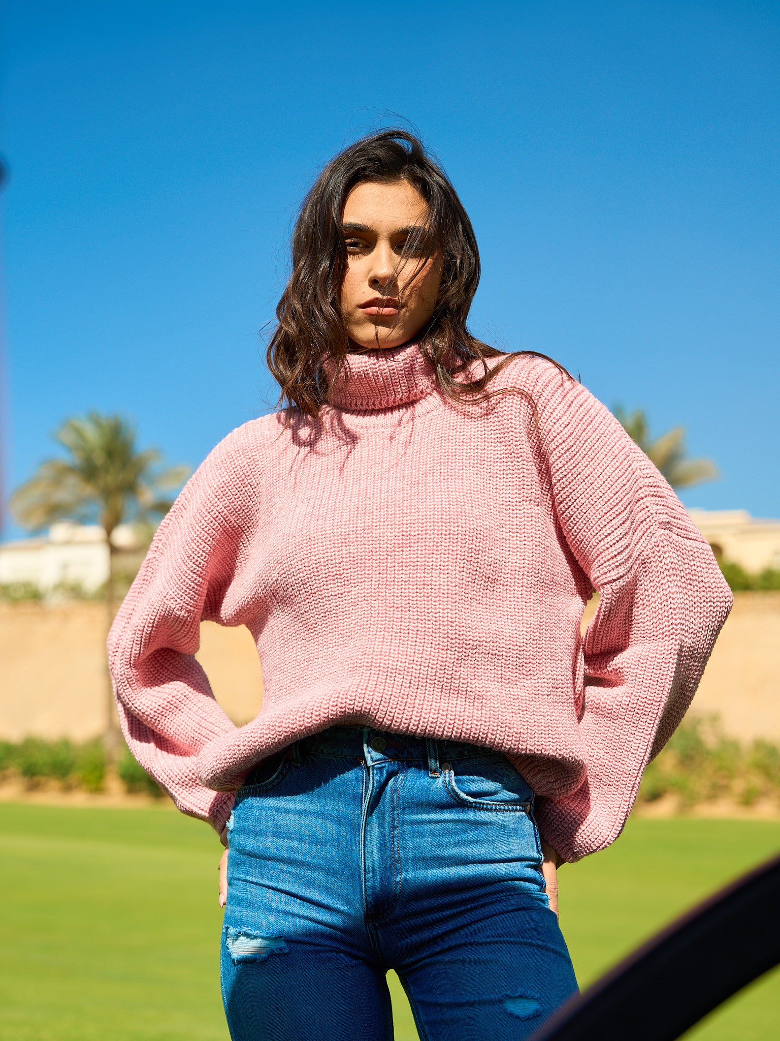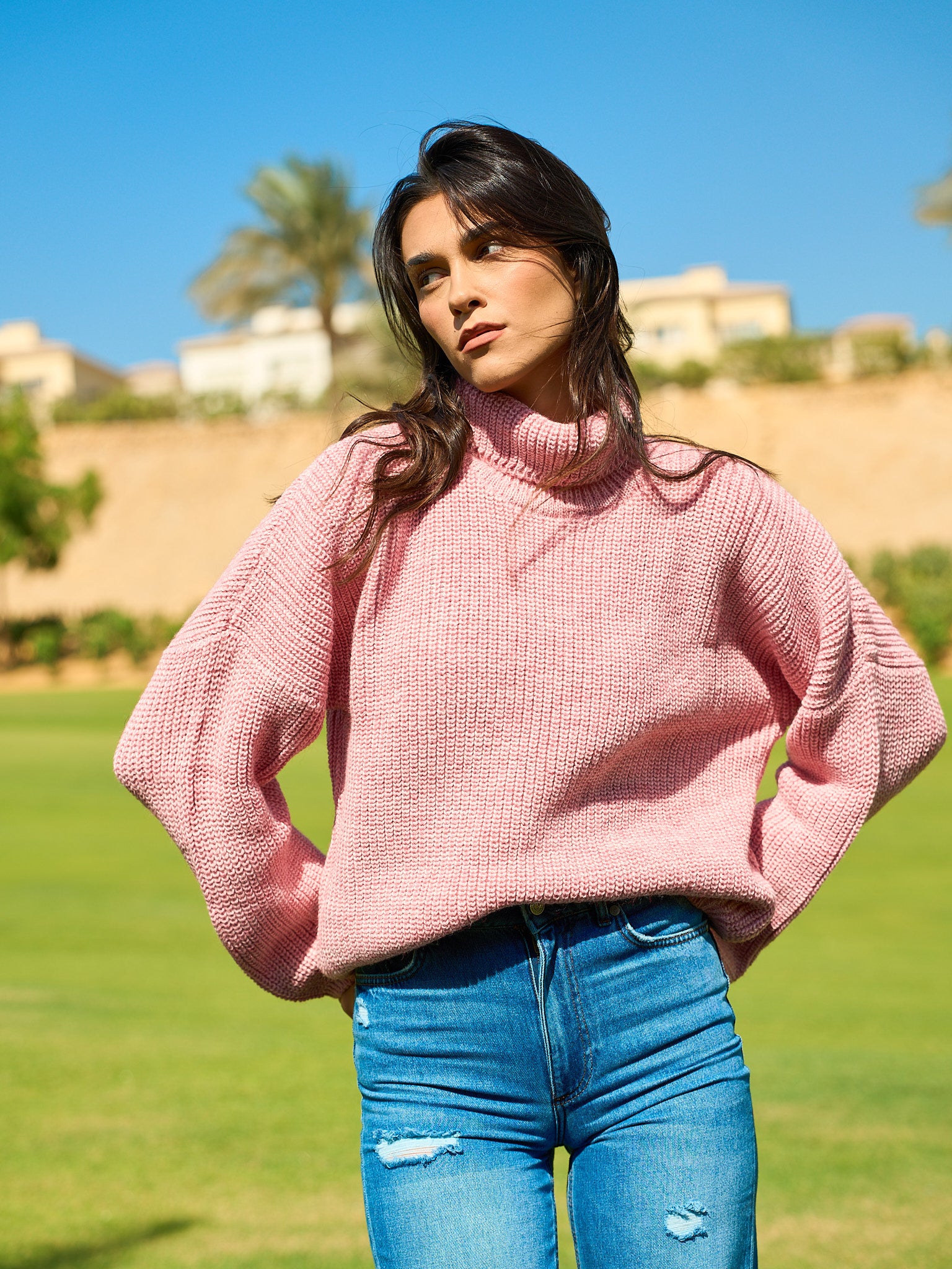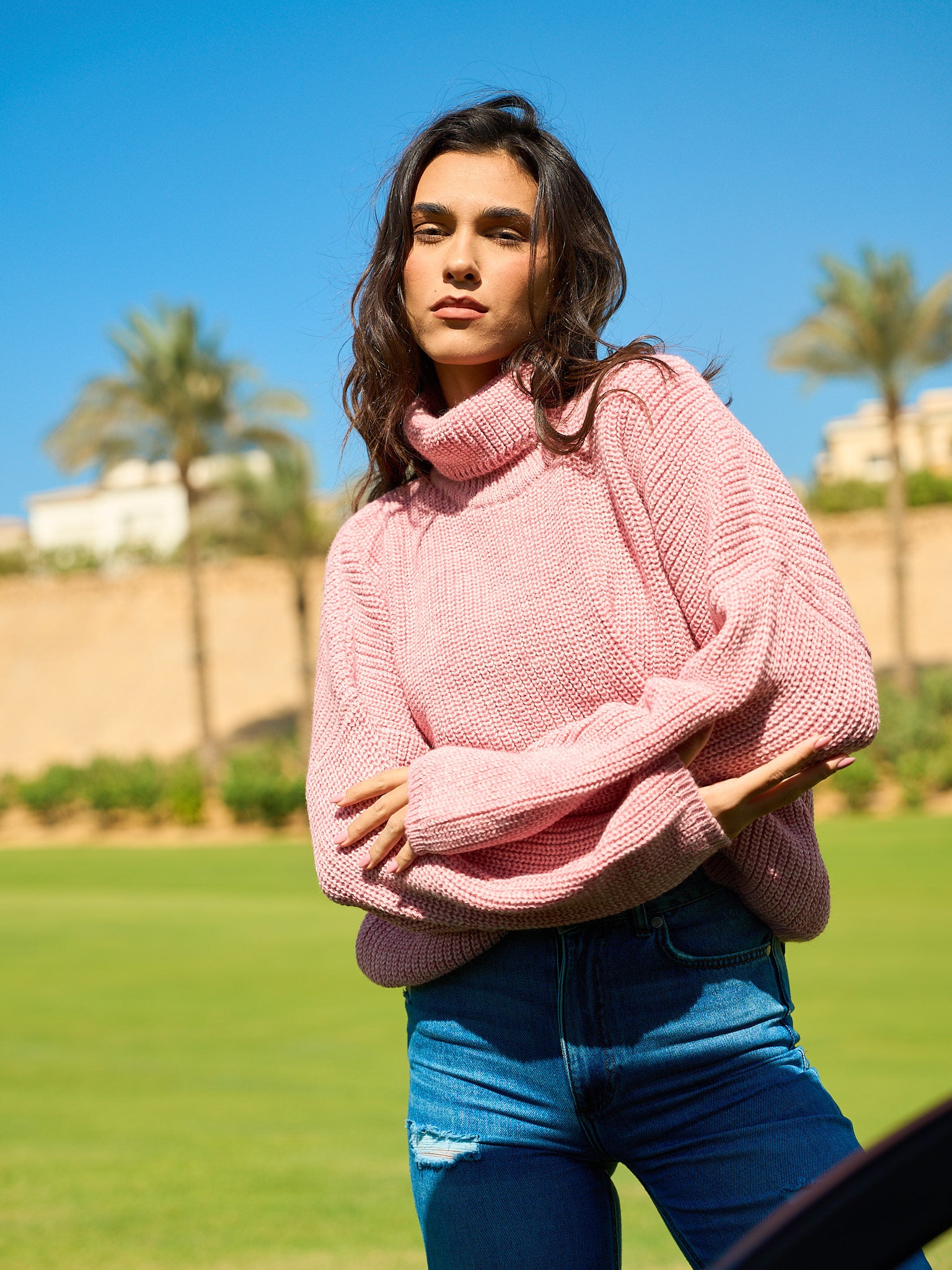 Essential is the perfect word to describe this soft knit wool jumper, it's a must-have for your winter wardrobe. It features a turtleneck with a rolled edge and long raglan sleeves.