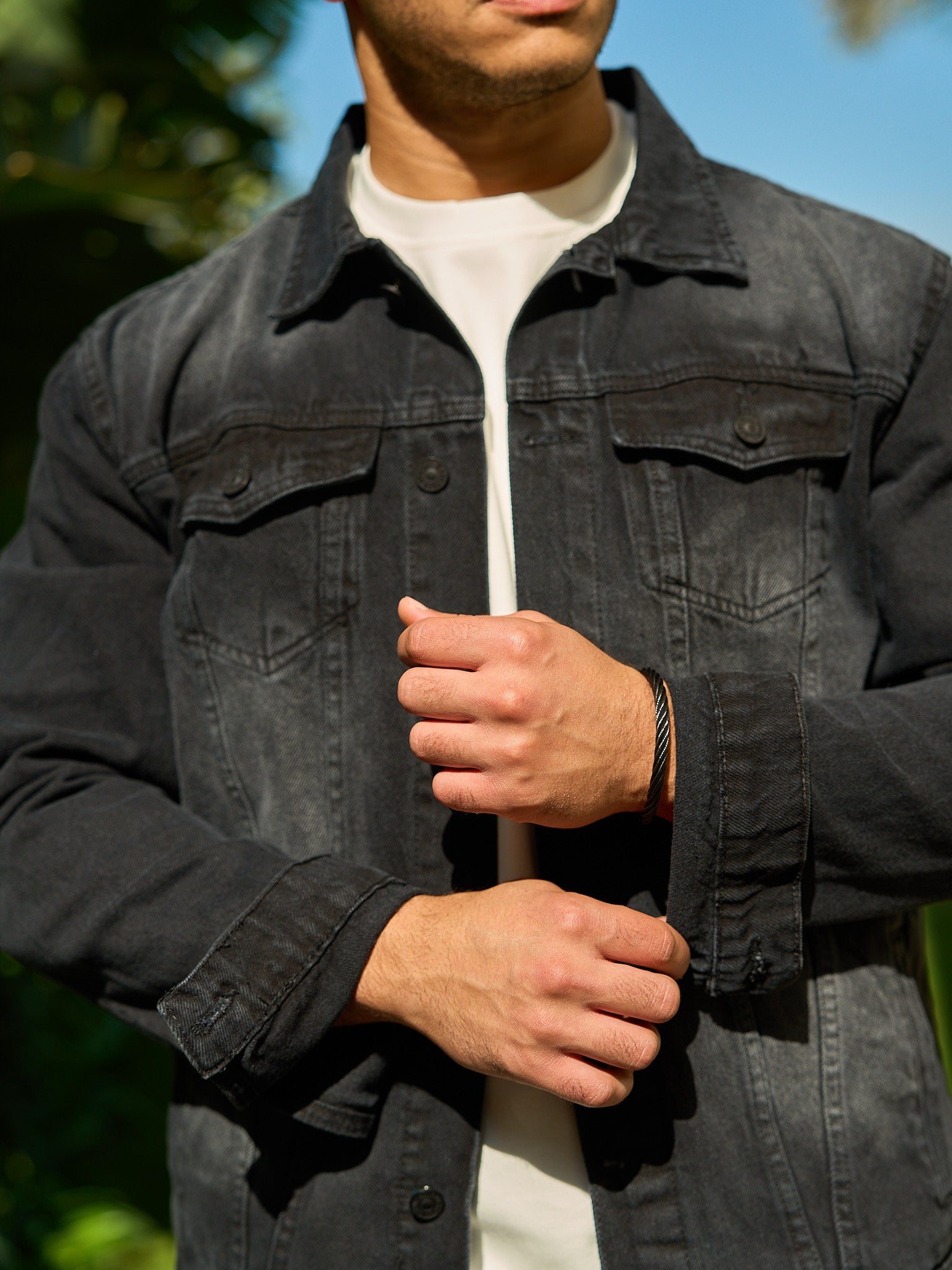 The Black Denim Jacket , is essential outerwear piece that seamlessly blends timeless style with a modern, distressed edge. Designed for durability and year-round wear, this jeans jacket is your new go-to for effortless cool.