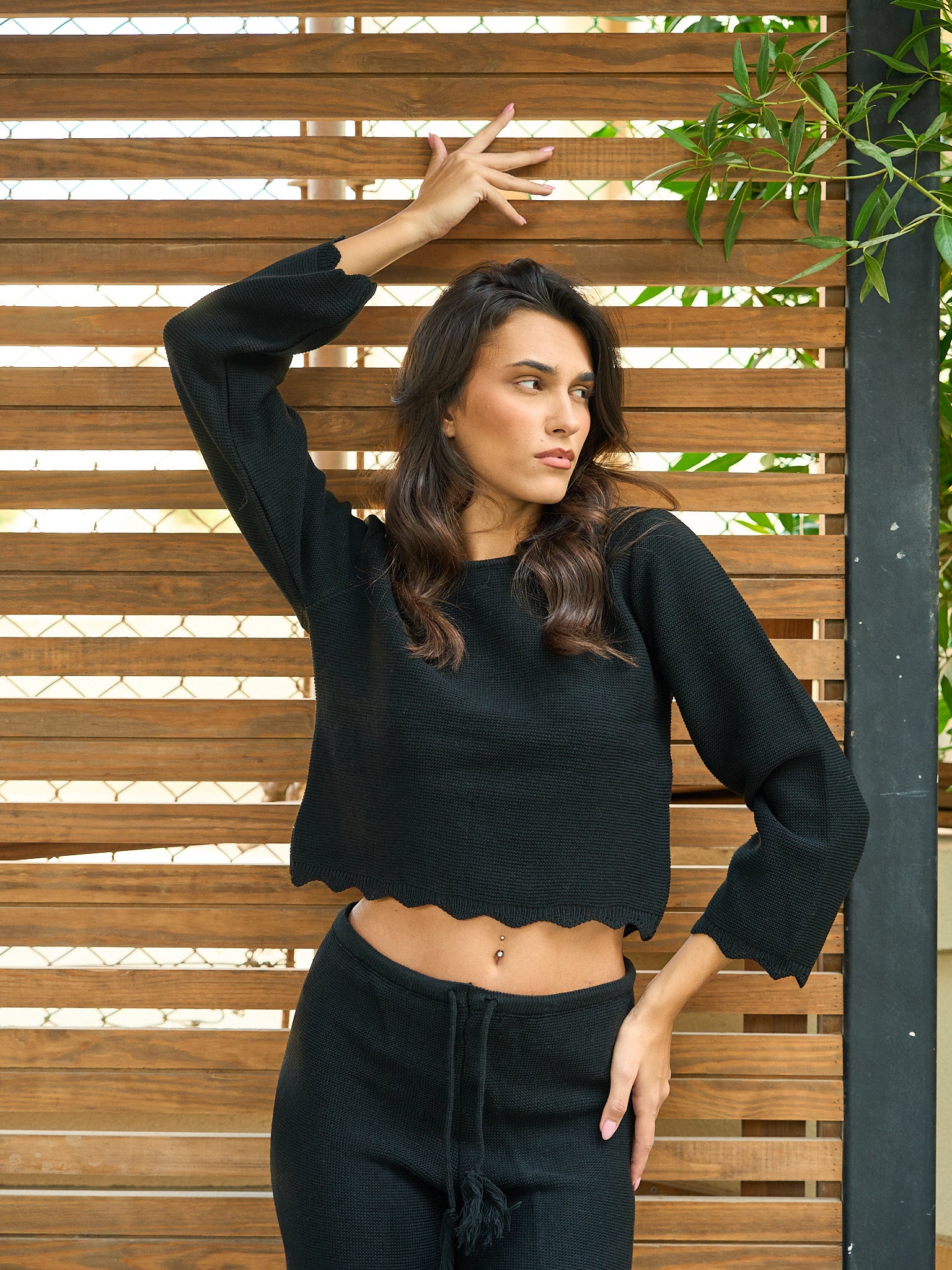 Embrace luxurious comfort and vibrant style with our Emerald Knitted Set. Designed for ultimate relaxation , this two-piece ensemble is perfect for stylish lounging, or elevated casual outings. The Black color and unique knit texture make a stunning statement.